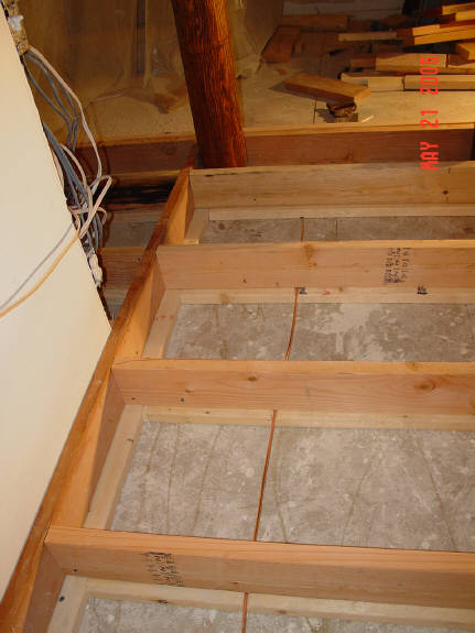 The raised foundation for the floor