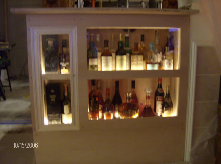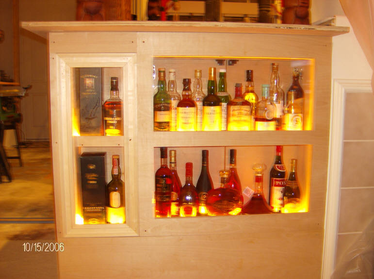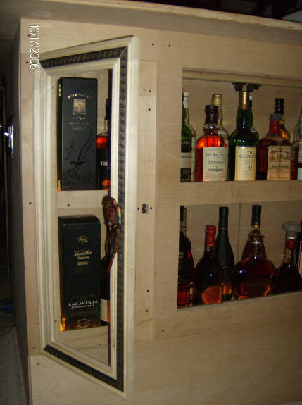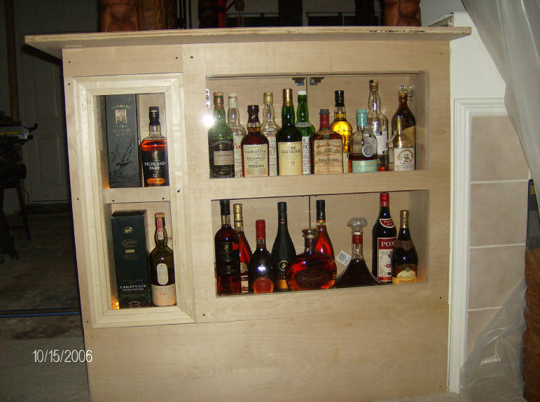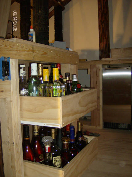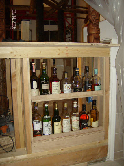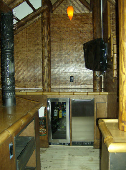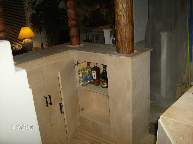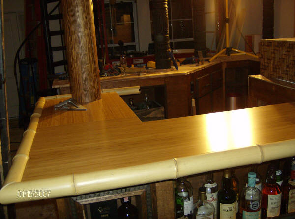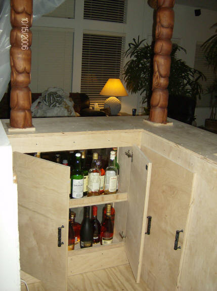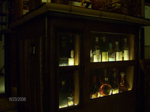 Sample of bamboo flooring Tinted bronze parrot handle Fine scotch and liquor cabinet TIKI ROOM......12/31/06 (Click for larger image)