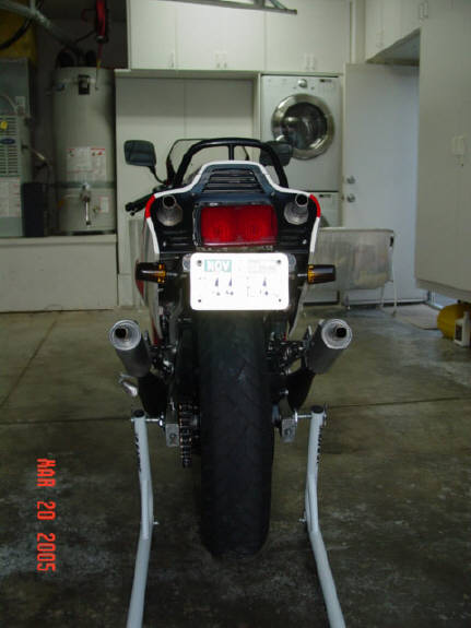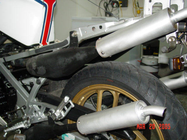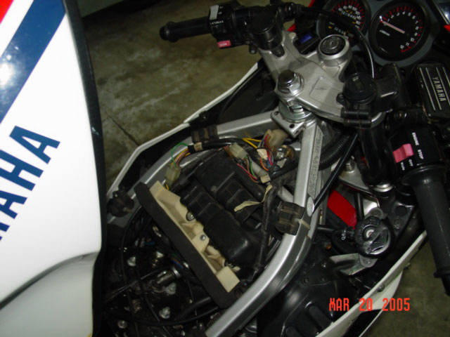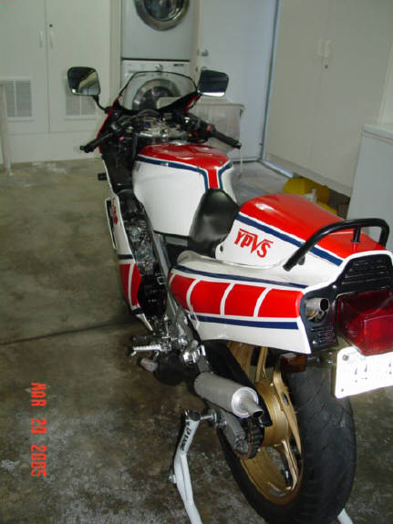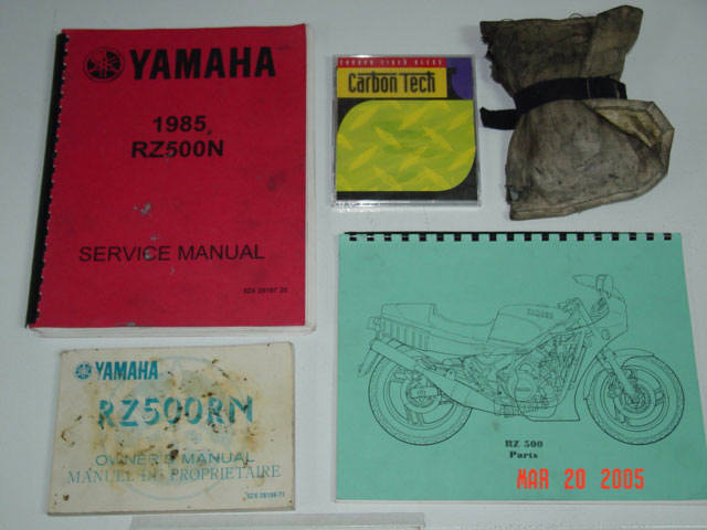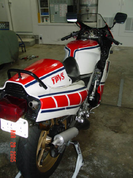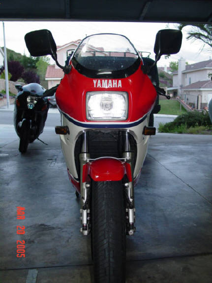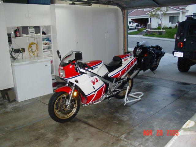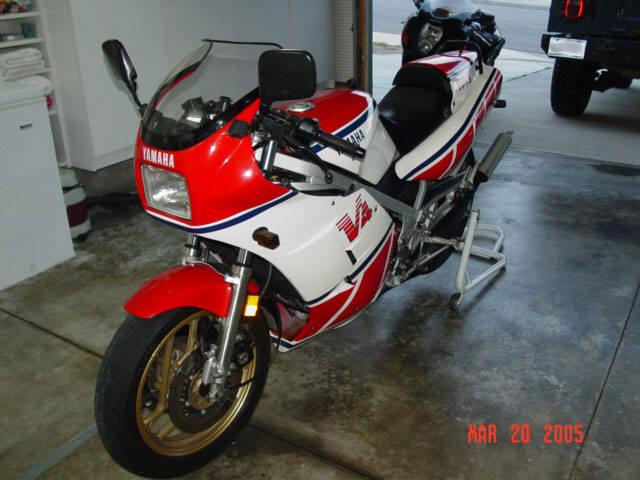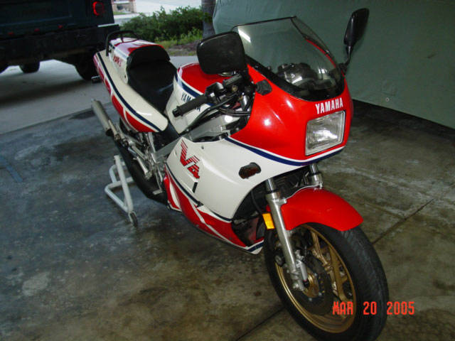 This is my 1985 Yamaha RZ500N. The engine is a liquid cooled V4 2 stroke equipped with electronic powervalves. Extremely limited and never sold in the U.S., I am the second owner of this bike, obtaining and importing it from the original owner in Alberta, Canada (it's actually my second RZ500 - my original one being imported in 1985 brand new from Ontario, Canada). This bike is currently registered in the great state of Texas, USA. It is currently insured in California. I have owned it a little over 7 years and it has 13K original miles (I purchased it with approximately 8500mi.) and I rode it daily until buying my Hayabusa (seen in background). Upon purchase I have made the following modifications: