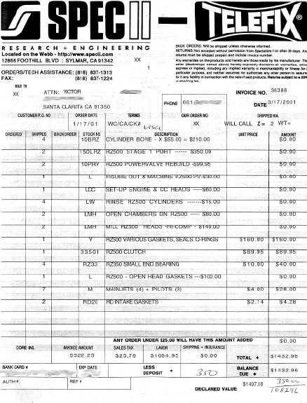 New top-end...all machine work performed by Gary Shumake at Spec II Performance. This bike has never been dumped, and other than normal wear and tear associated with 21 years/13K miles the only flaws are a small dent in the left side of fuel tank (see pics) and a crack in the right side panel (see pics). I also have the factory parts (i.e. exhaust, turn signals, etc.). It also has the rare factory seat cowling. The bike is not on premix and still runs the factory oil injector (Yamalube).