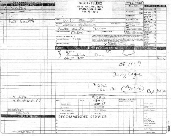 All motor work professionally performed by Gary Shumake at Spec II
